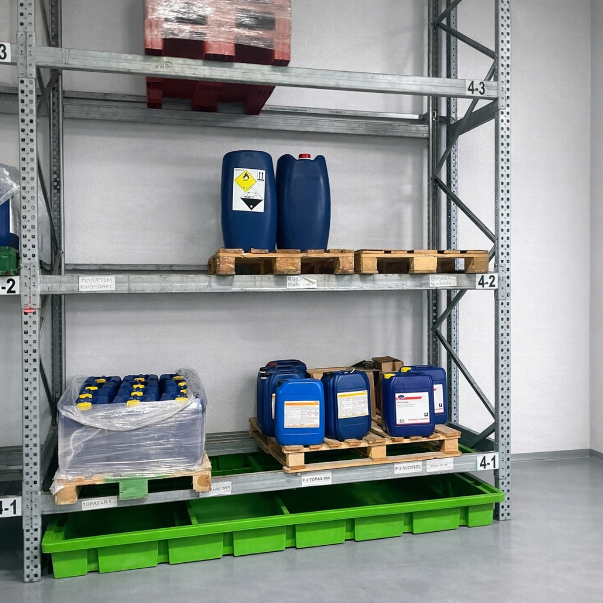 To install under racks for secondary containment, usable also for drums.